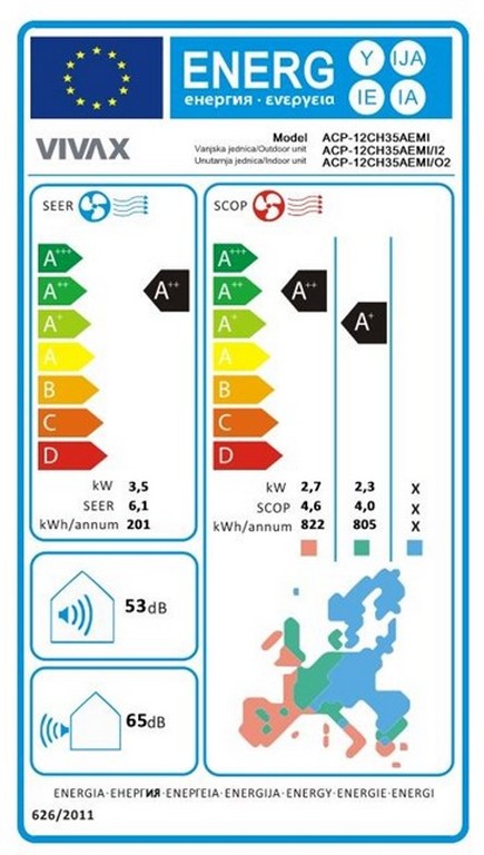 | SEER koeficijent: | 6.1 |