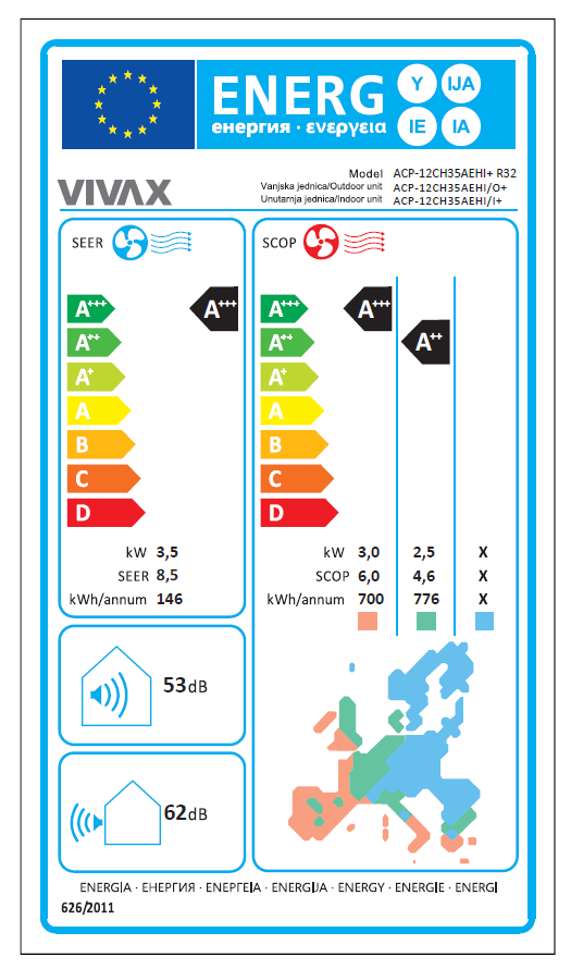 | Energetska klasa grijanja: | A++ |